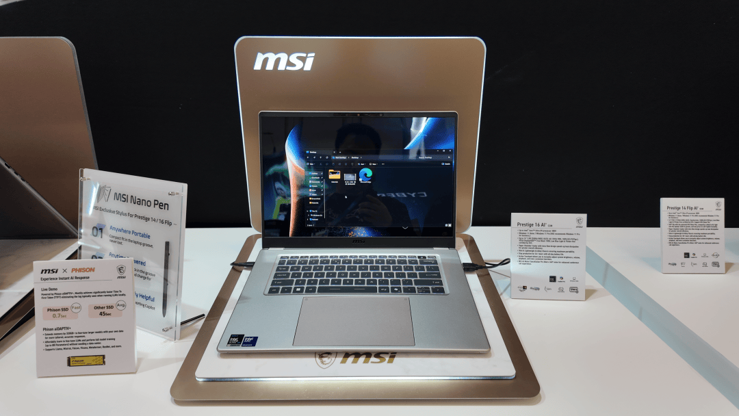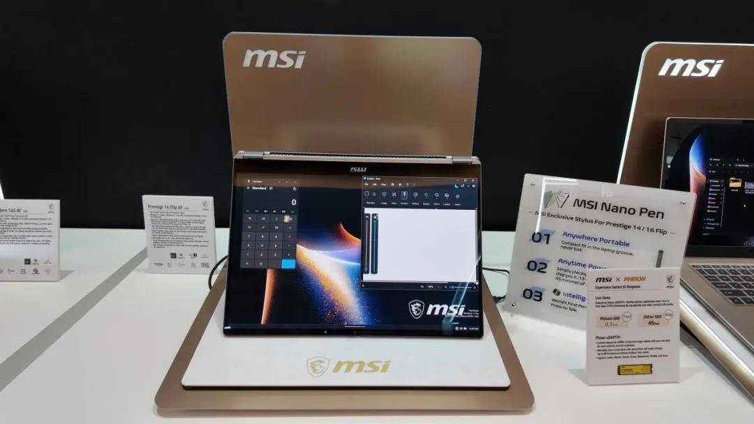 尊爵系列还配备了创新交互功能。微星心流触控板面积较前代增大53%,支持自定义滑动手势。尊爵14/16 Flip机型更提供360度翻转设计和微星灵隐触控笔,触控笔放入机身隐藏笔舱仅需15秒充电即可使用45分钟,极大便利创意工作者。
