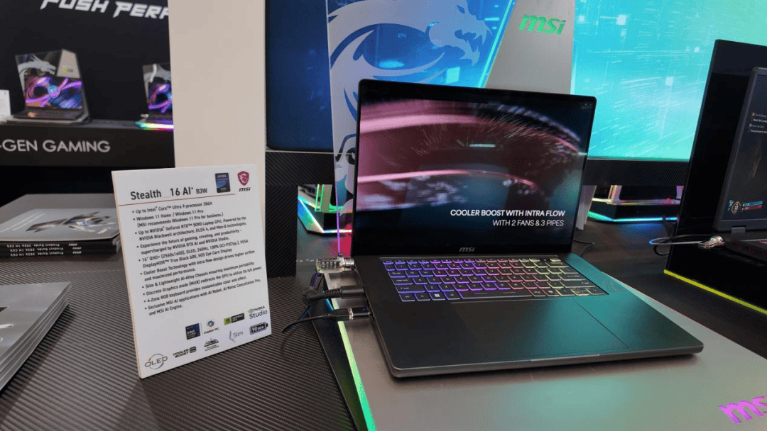 微星泰坦(Raider)16 Max成为展会焦点,它是微星首款整机性能释放达300W的游戏本。在全新散热系统Cooler Boost Trinity支持下,可为175W满功耗RTX 5090或5080显卡和125W功耗的英特尔酷睿Ultra 200HX处理器提供持续稳定性能输出。
